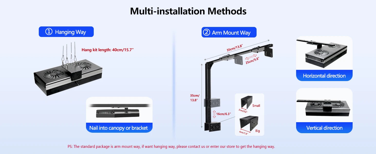 - Arm Kit OR Hanging Kit (based on the selected variant)