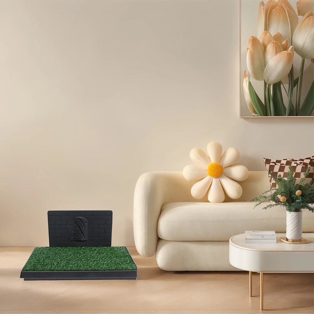 The artificial turf provides a natural grass-like texture that many dogs instinctively recognize, helping ease potty training.
